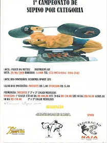 INSCRIÇÕES: categoria iniciante R$5,00 e avançado R$ 15,00, na academia SPORT LIFE.